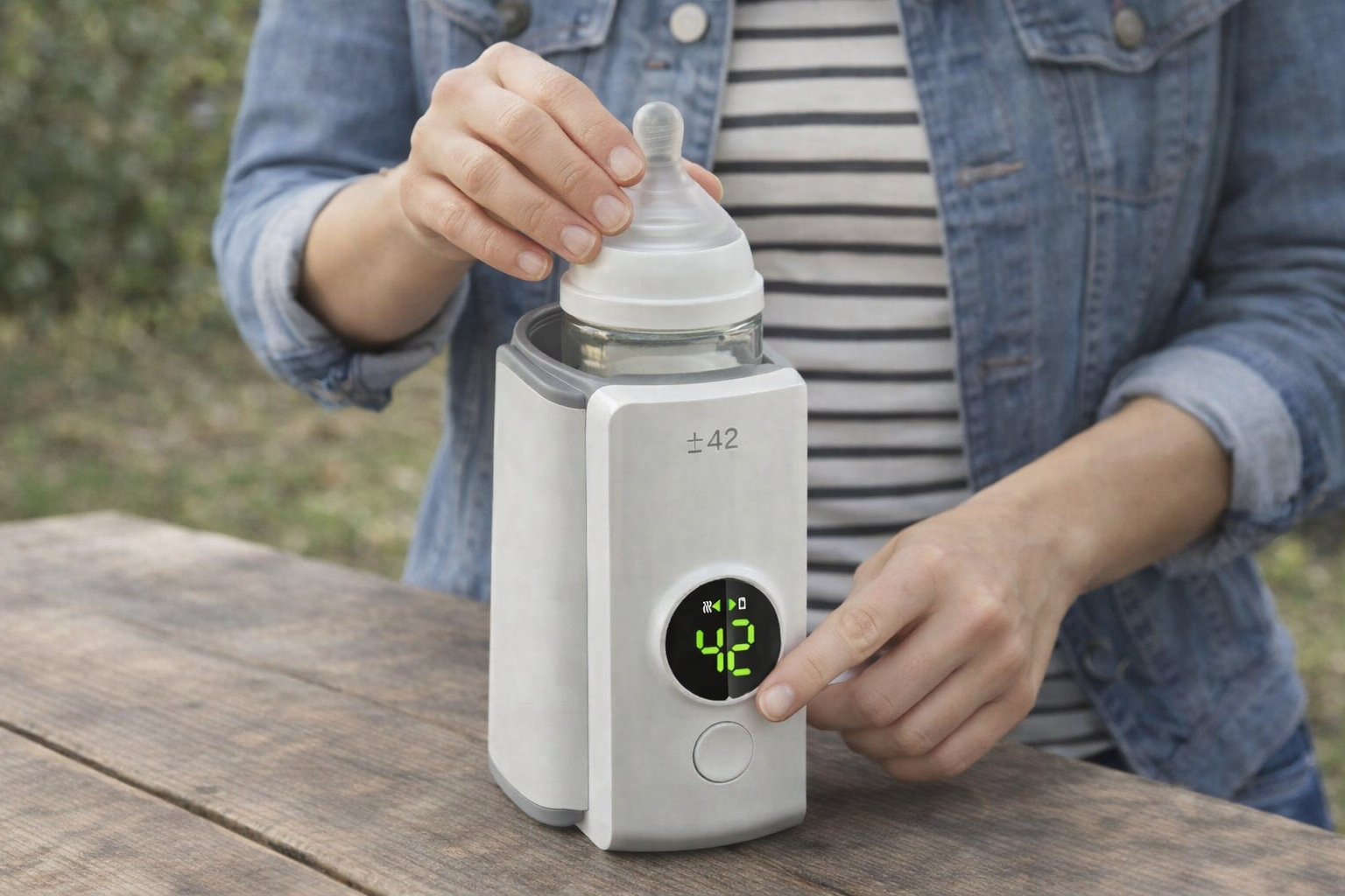 Coloca el biberón en el calentador, selecciona el modo adecuado y deja que el dispositivo haga su trabajo. En pocos minutos tendrás la leche a la temperatura correcta, lista para usar, sin necesidad de microondas ni preparaciones complicadas.
