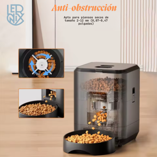 Este comedero automático permite programar las comidas de tu mascota de forma sencilla, asegurando que reciba su alimento a la hora correcta y en la cantidad adecuada. Ideal para mantener rutinas estables incluso cuando no estás en casa.