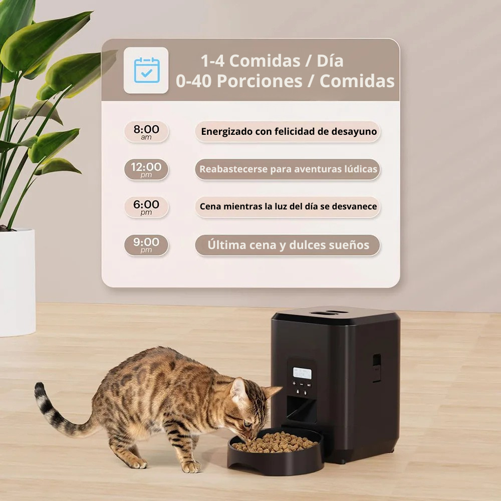 Porque te permite organizar mejor tu tiempo sin descuidar a tu mascota. Olvídate de los maullidos a deshoras y de las prisas: tu mascota sigue su rutina y tú ganas tranquilidad.